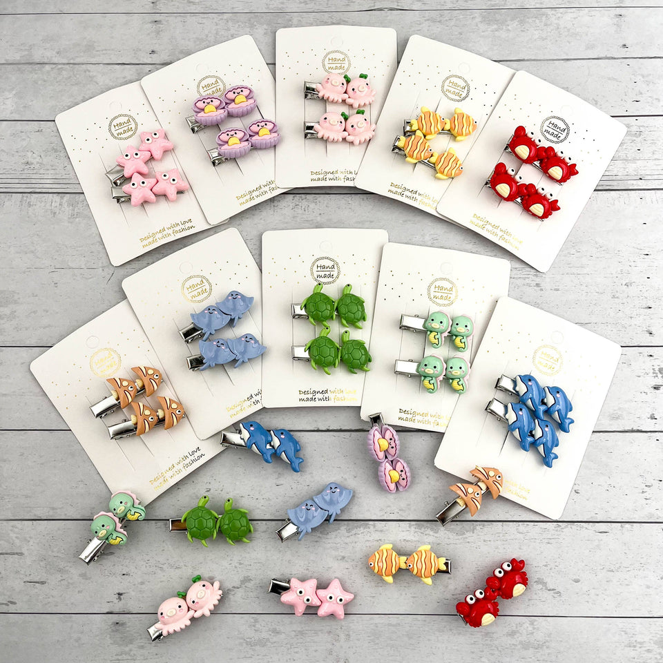 Dive into playful styling with this Ocean Creature Clip, featuring adorable designs like a crab, octopus, seahorse, and starfish. Each clip is crafted with vibrant colors and charming details that bring the magic of the sea to your hair. Made with a sturdy alligator clip base, they provide a secure hold while adding a splash of personality to any hairstyle. Perfect for kids, ocean lovers, or anyone who wants a fun, nautical-inspired accessory for daily wear or themed occasions.