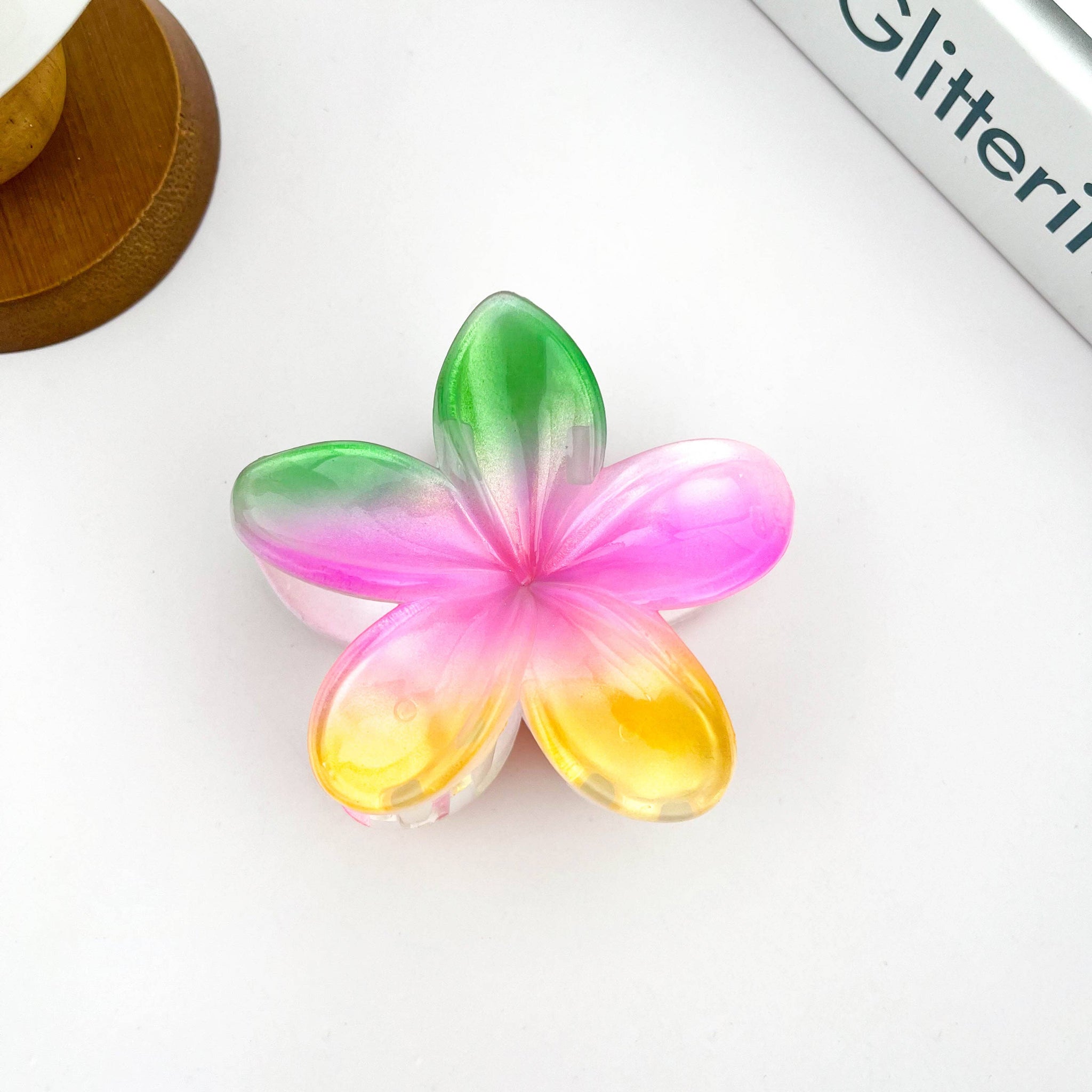 Brighten up your hairstyle with the Colorful Plumeria Claw Clip, a beautiful flower-inspired accessory that adds a fresh and tropical vibe to any look. Designed with delicate petals in vibrant hues, this clip captures the charm of the plumeria flower, known for its elegance and exotic beauty. Perfect for securing your hair with a secure yet gentle hold, it’s ideal for casual days, beach outings, or special occasions. Add a touch of floral flair to your style with this colorful and stylish hair clip!
