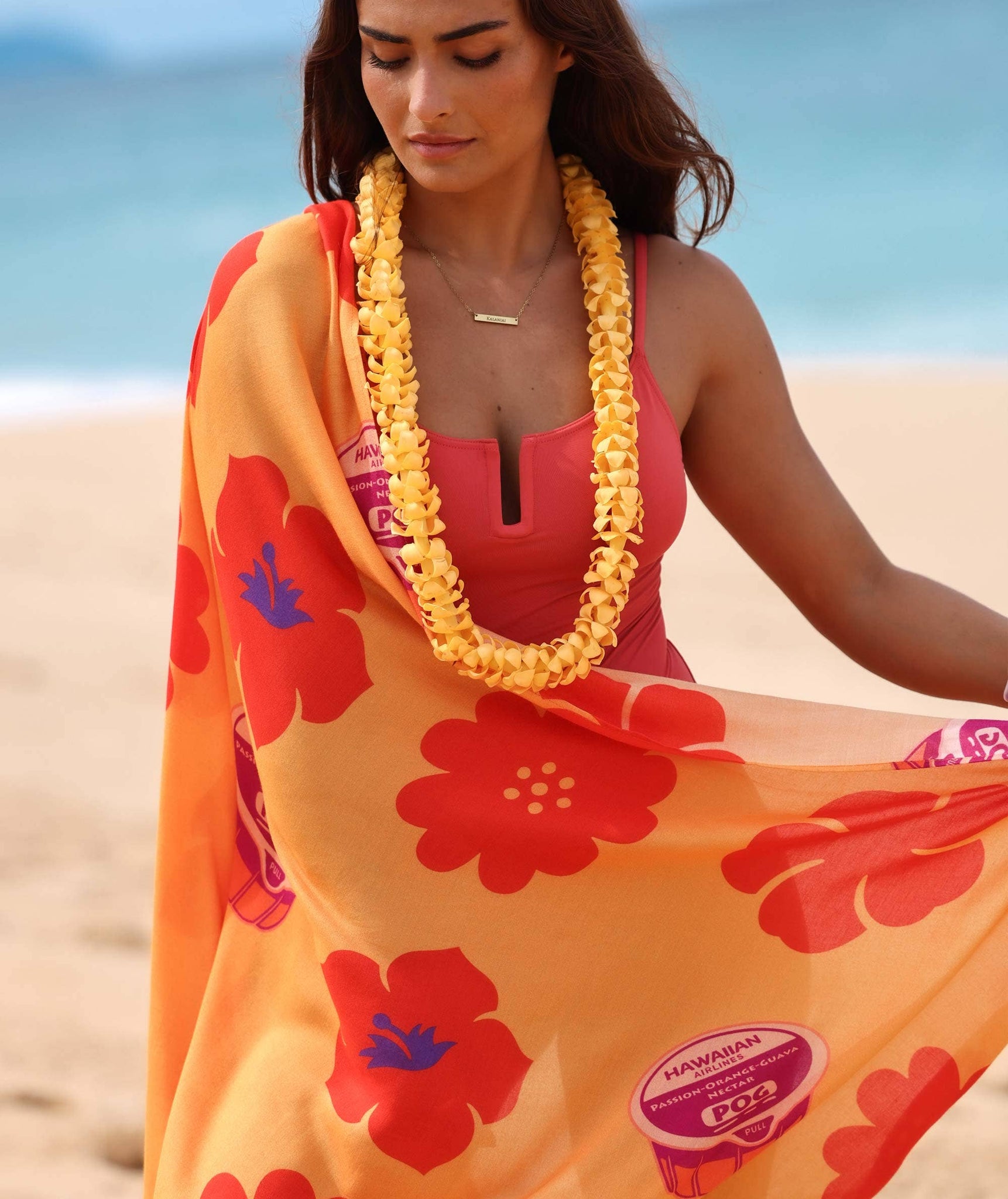 The bright hibiscus, the cup of POG in your hand, the feeling of being on your way somewhere special. This Tag Aloha x Hawaiian Airlines collaboration celebrates the simple traditions that make neighbor island travel magical. So wherever you go, a little piece of Hawai‘i and the sweetness of the journey will go with you. The pareo, or sarong, is a versatile wrap essential for island life. Whether worn at the beach as a bikini cover-up or styled for an evening out, it’s loved for its adaptability and ease. Our pareos are soft, breathable, quick to dry, and beautifully drape to flatter every body, creating a timeless look embraced by both locals and visitors.