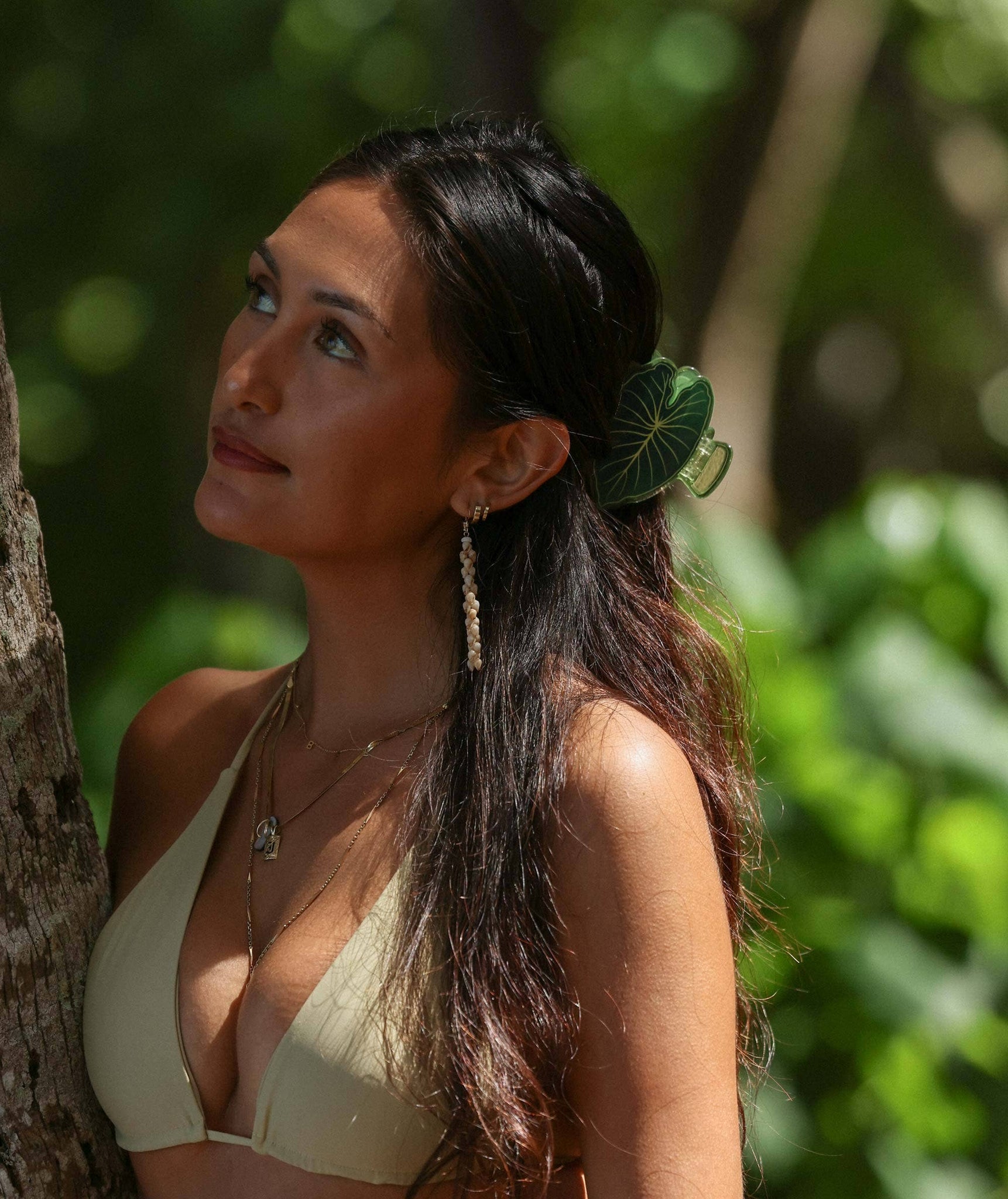 Our collaboration with Kahomelani's brings Hawaiʻi-inspired designs to life in a new way. These hair clips are designed to hold securely while showcasing the flowers, plants, and natural elements we love, creating accessories that are both beautiful and functional for everyday wear or special occasions. You know a kalo leaf when you see one. The distinctive heart shape is iconic in Hawaiʻi, woven into both the landscape and cultural life. This design brings that familiar form to a hair clip. Where Deep Connections Meet Unique Creations. Born and raised in Hawaiʻi, Kahomelani’s strives to create apparel and accessories inspired by the islandʻs beauty and individuality.